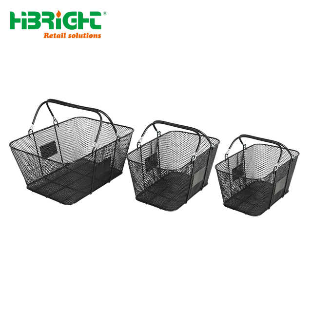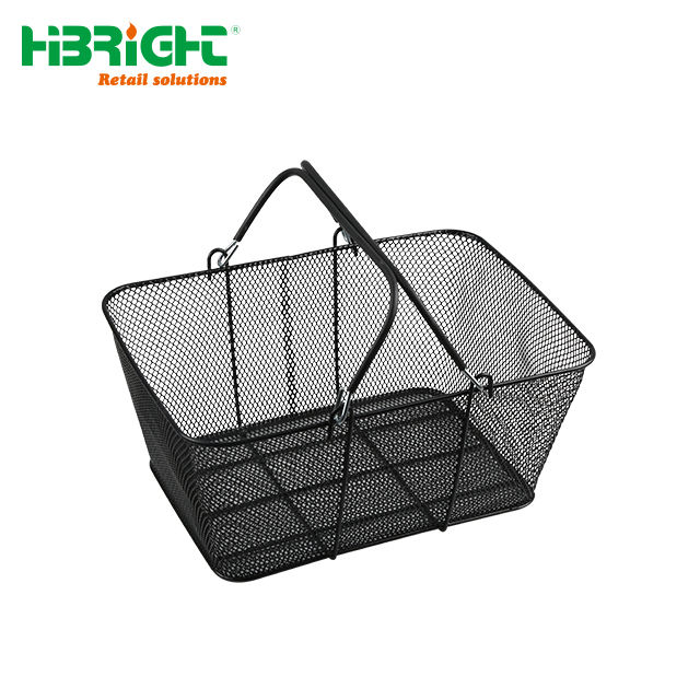 ร้านค้าปลีกโลหะลวดตาข่ายตะกร้าช้อปปิ้งที่มีด้ามจับ