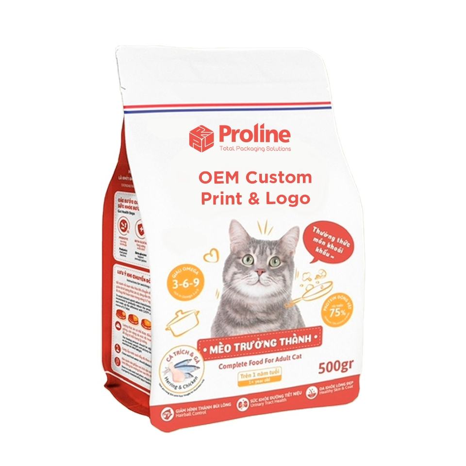 กระเป๋าไมลาร์มีฐานแบนสำหรับวางจำหน่ายในเวียดนามบรรจุภัณฑ์อาหารสุนัขแมว