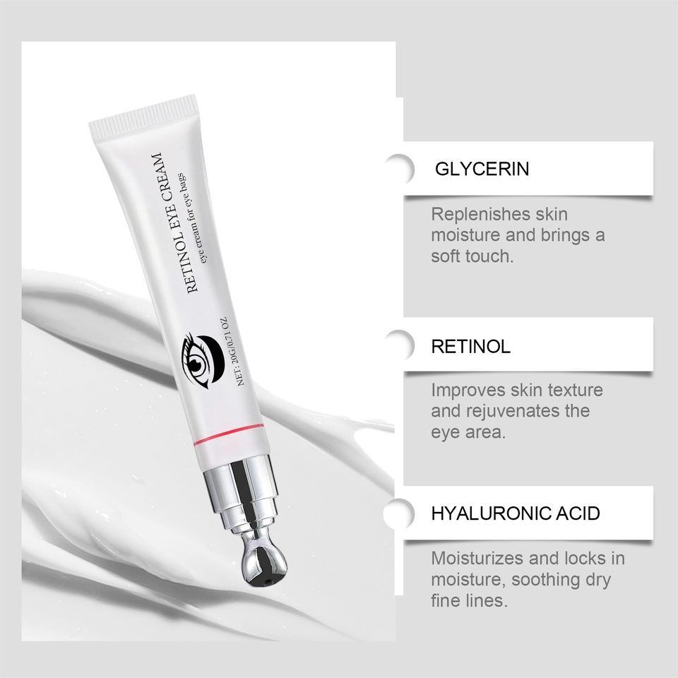 ครีมนวดรอบดวงตาเรตินอล 20 กรัม รับผลิตแบบ OEM แบรนด์ส่วนตัว ช่วยกระชับ ลดเลือนริ้วรอย คอลลาเจน บำรุงผิวชุ่มชื้น สำหรับผู้ทานมังสวิรัติ