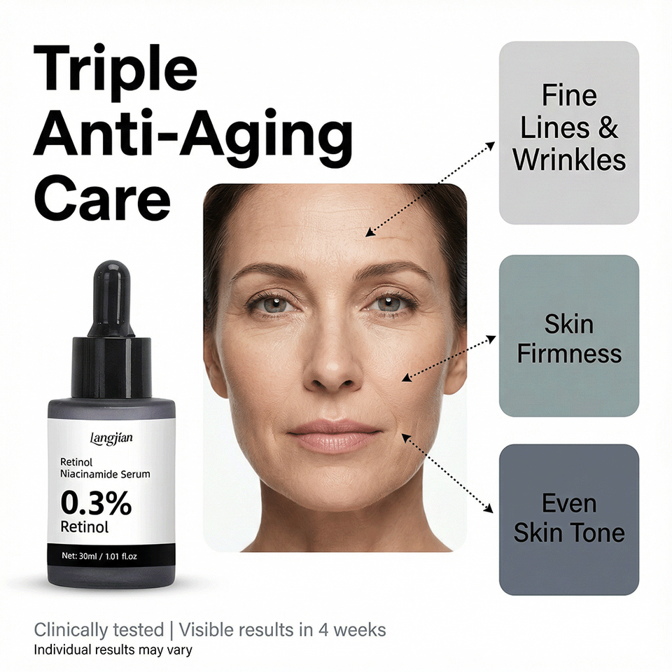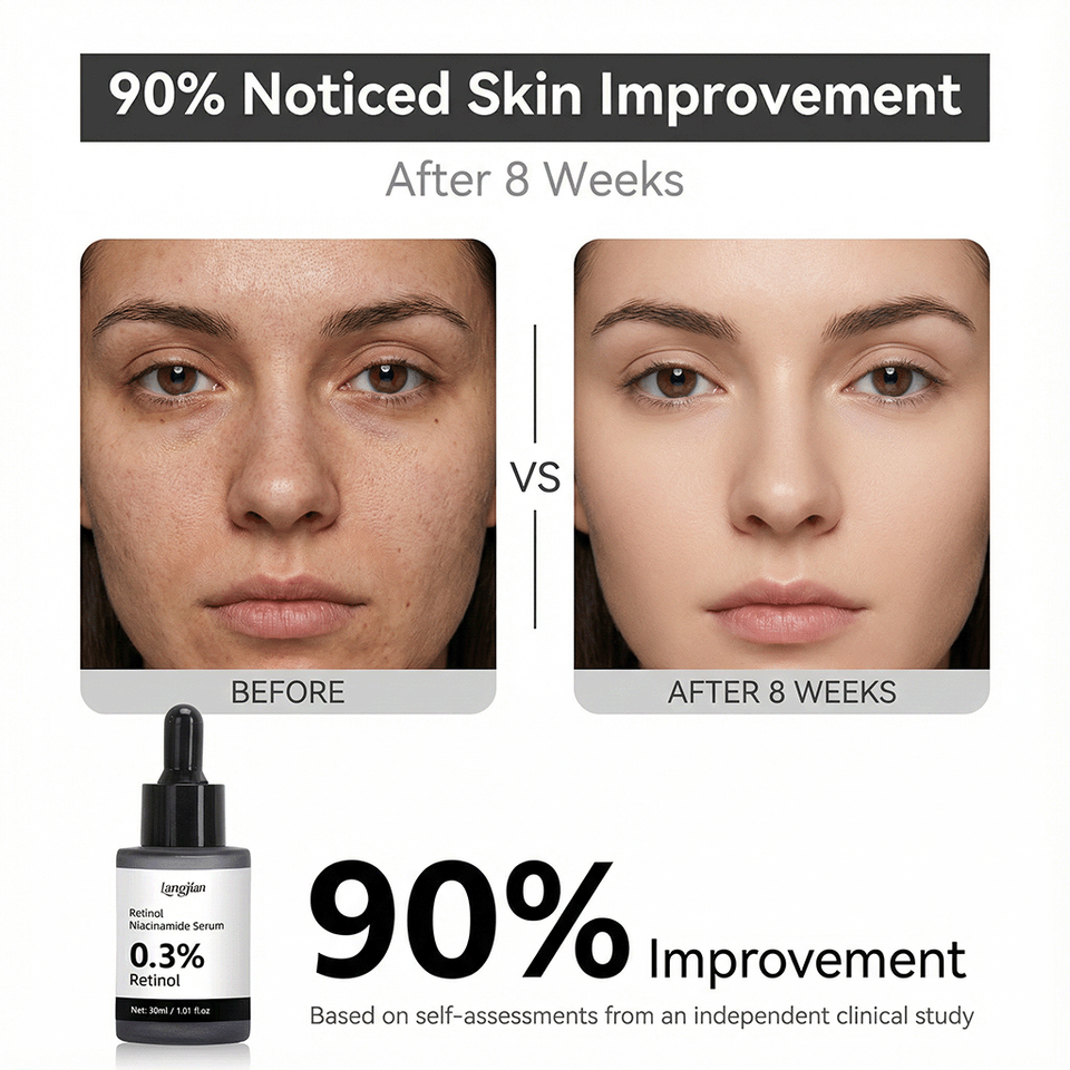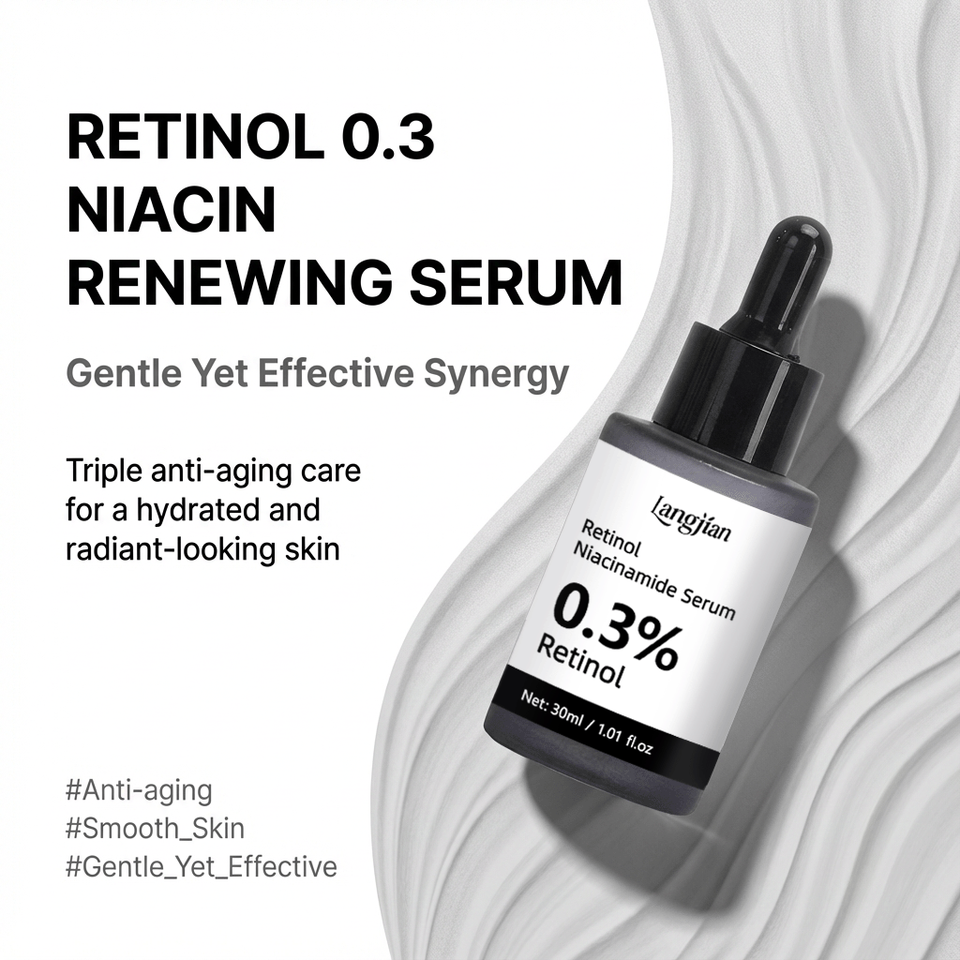 เซรั่มเรตินอล ผิวเรียบเนียน 0.3% เรตินอล 5% ไนอะซินาไมด์ 20+ ส่วนผสมปลอบประโลมผิว อ่อนโยนสำหรับผิวเริ่มต้น ใช้ได้กับผิวที่มีริ้วรอยและต่อต้านริ้วรอย