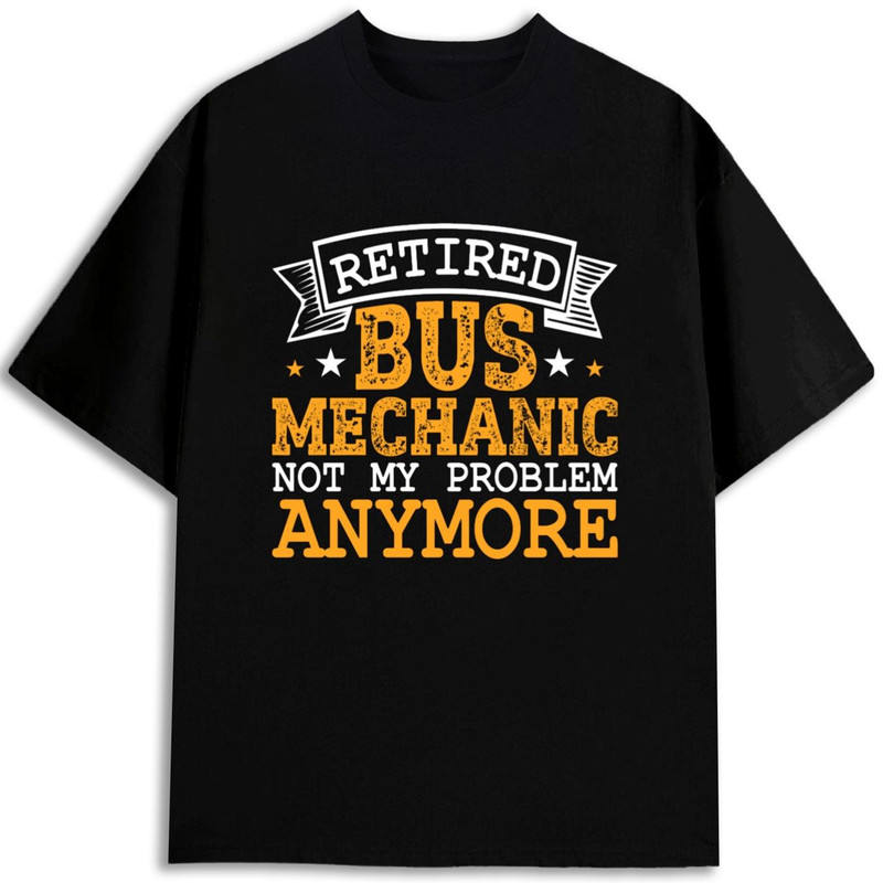 ช่างซ่อมรถโดยสารเกษียณแล้ว ไม่ใช่ปัญหาของฉันอีกต่อไป เสื้อยืดผู้ชายผ้าฝ้าย 100% พิมพ์ลาย สกรีนลาย ผลิตในอเมริกา แขนสั้น คอกลม