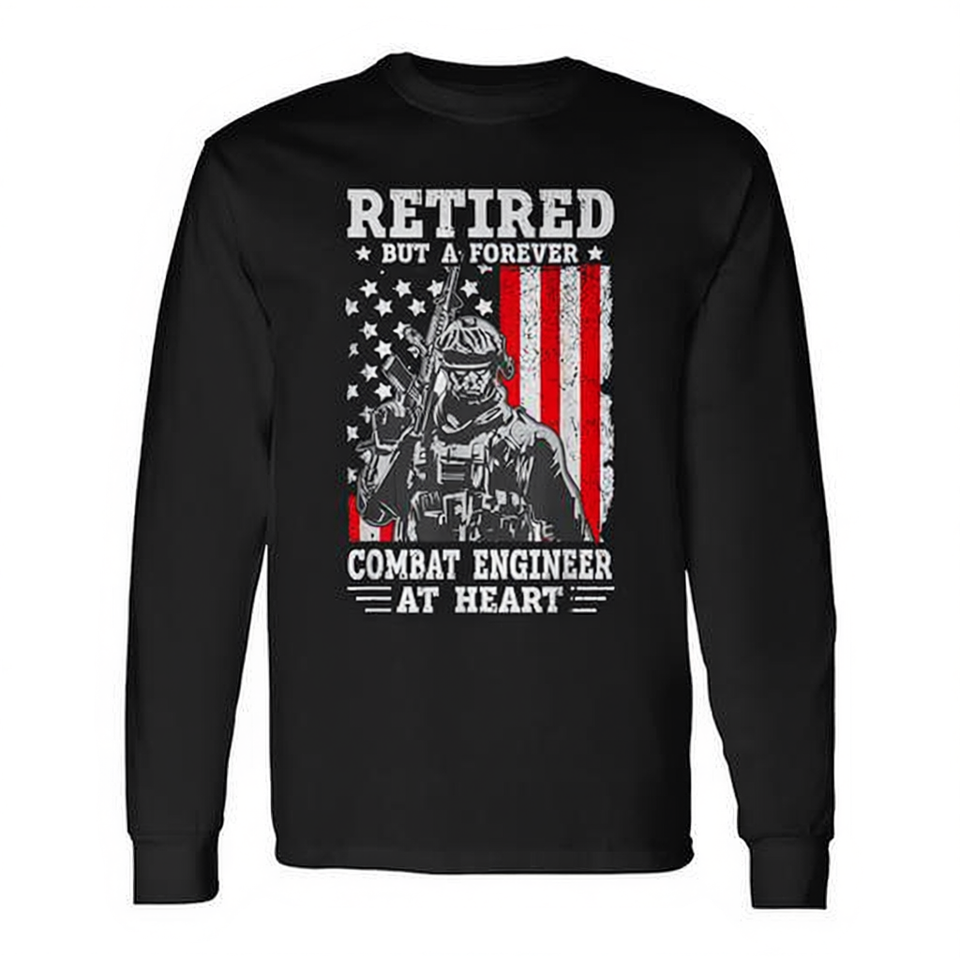 เสื้อยืดแขนยาววิศวกรทหารผ่านศึกเกษียณอายุ ดีไซน์ธงชาติอเมริกัน