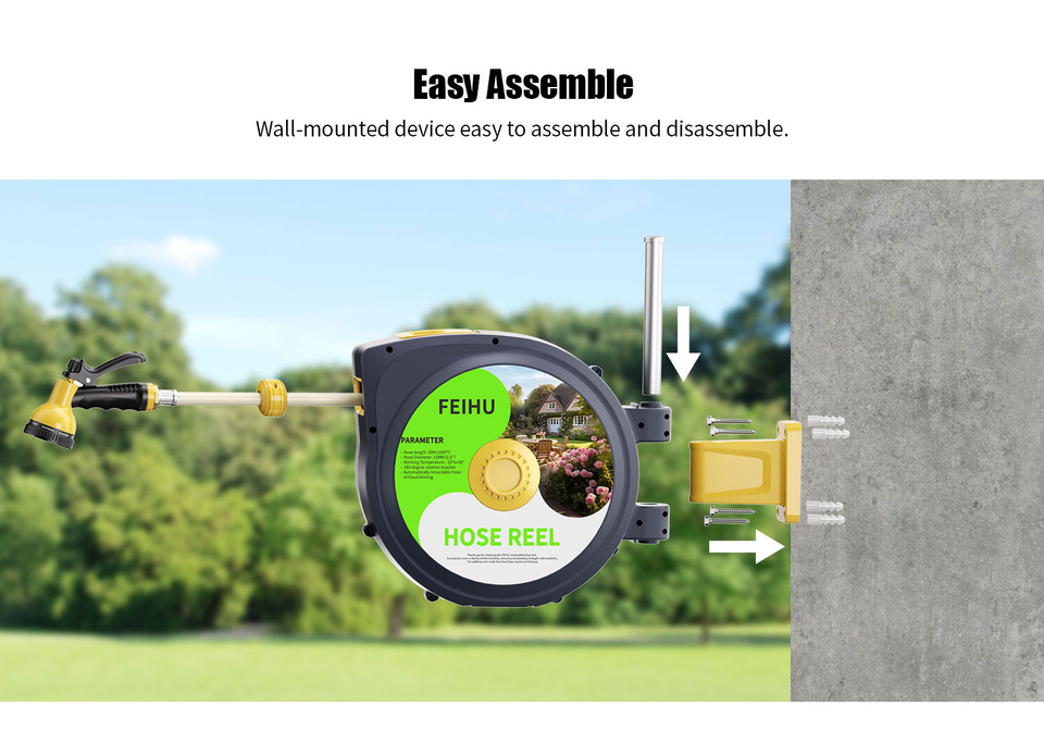 รีลสายยางในสวนแบบยืดหดได้, รีลท่อน้ำติดผนังขนาด1/2นิ้วพร้อมระบบม้วนกลับอัตโนมัติช้า