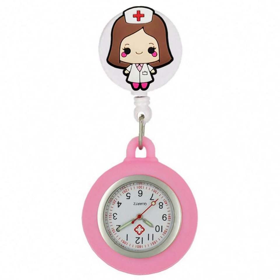 โรงพยาบาลหดได้ไอคอนทางการแพทย์รักหูฟังแพทย์การ์ตูนนางพยาบาลกระเป๋าดูคลิปแขวนป้ายรีลนาฬิกาควอตซ์