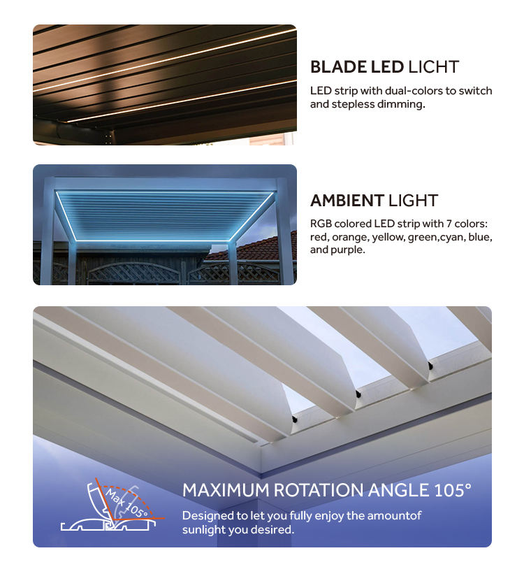 ชื่อสินค้า:เพอร์โกล่าแบบปรับได้พร้อมบานเกล็ด