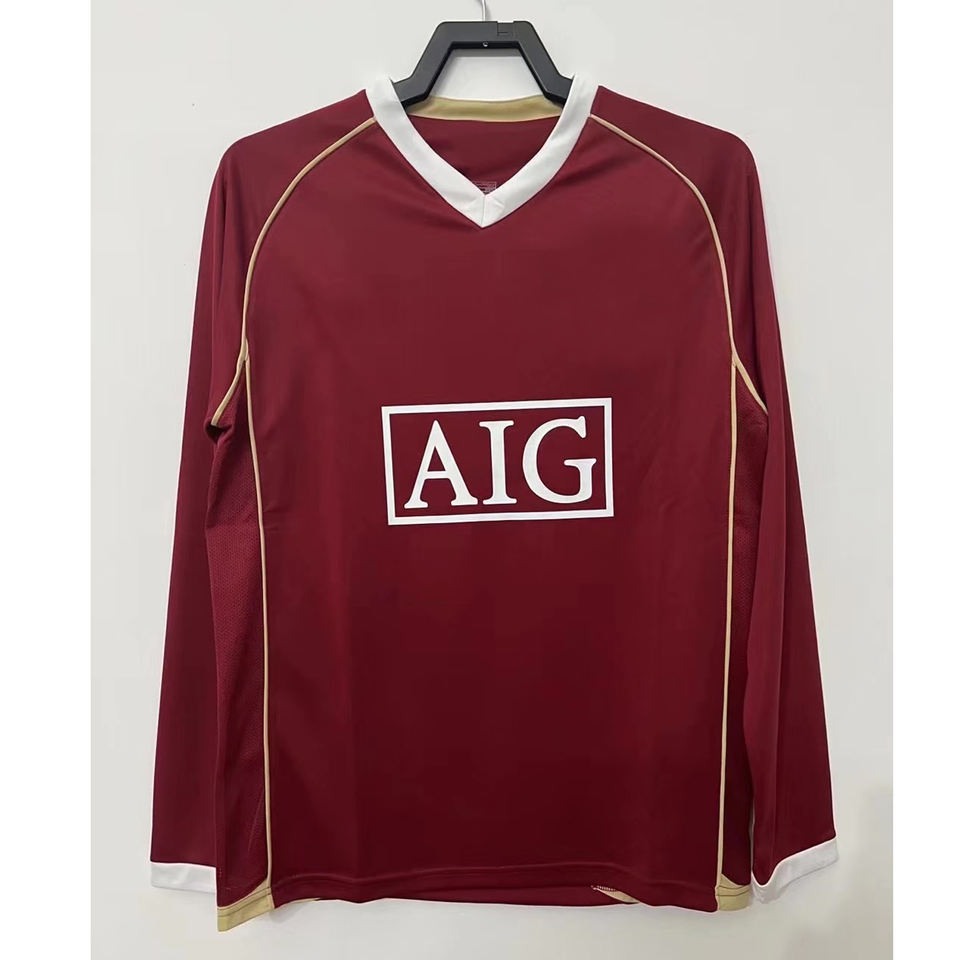 เสื้อแข่งแมนเชสเตอร์ยูไนเต็ด ฤดูกาล 2006/07 แบบเรโทร แขนยาว สำหรับฤดูร้อน ชุดฟุตบอล เสื้อยืดฟุตบอล ชุดยูนิฟอร์ม สำหรับการแข่งขันยุโรป รับสั่งทำแบบเร็ว