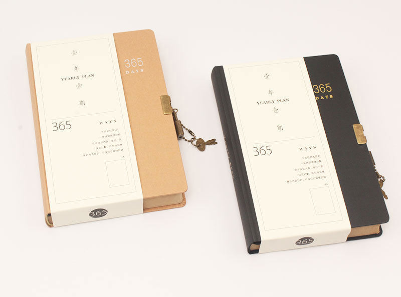 ไดอารี่สมุดจดตารางเวลาส่วนตัว365วันกระดาษคราฟท์แบบหนาพร้อมล็อค