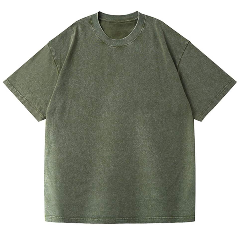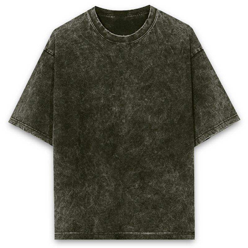 เสื้อยืดคอตตอนย้อมสีแบบเรโทร แอซิดวอช สำหรับผู้ชาย เนื้อผ้าหนา 220 GSM สไตล์วินเทจ ยูนิเซ็กส์ มีหลายสีให้เลือก