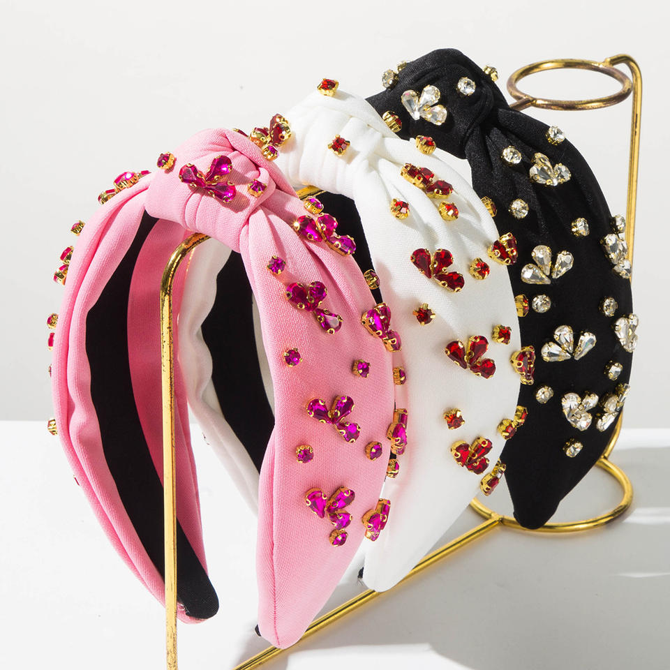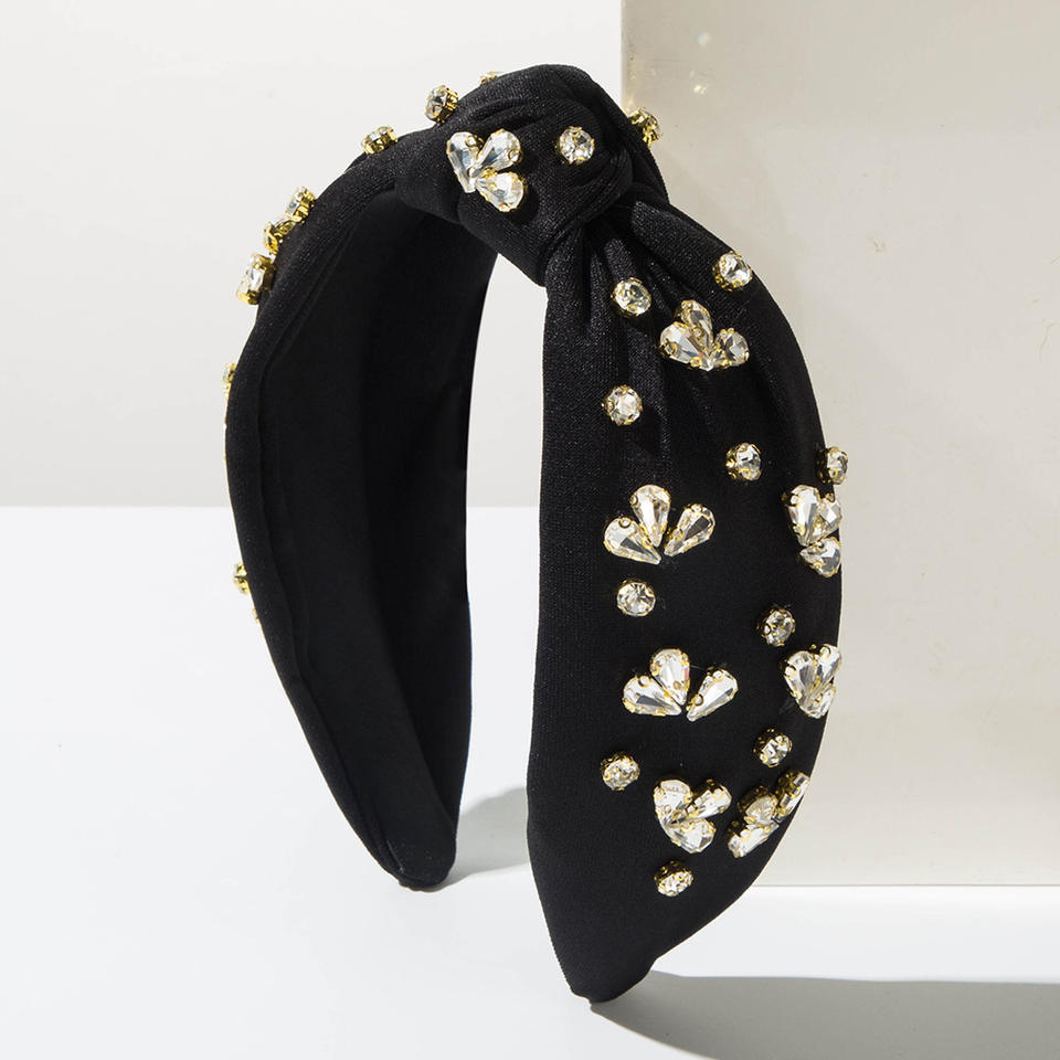 ที่คาดผมสไตล์เรโทรบาโรกประดับคริสตัลสำหรับผู้หญิง แบบผูกปมขอบกว้าง