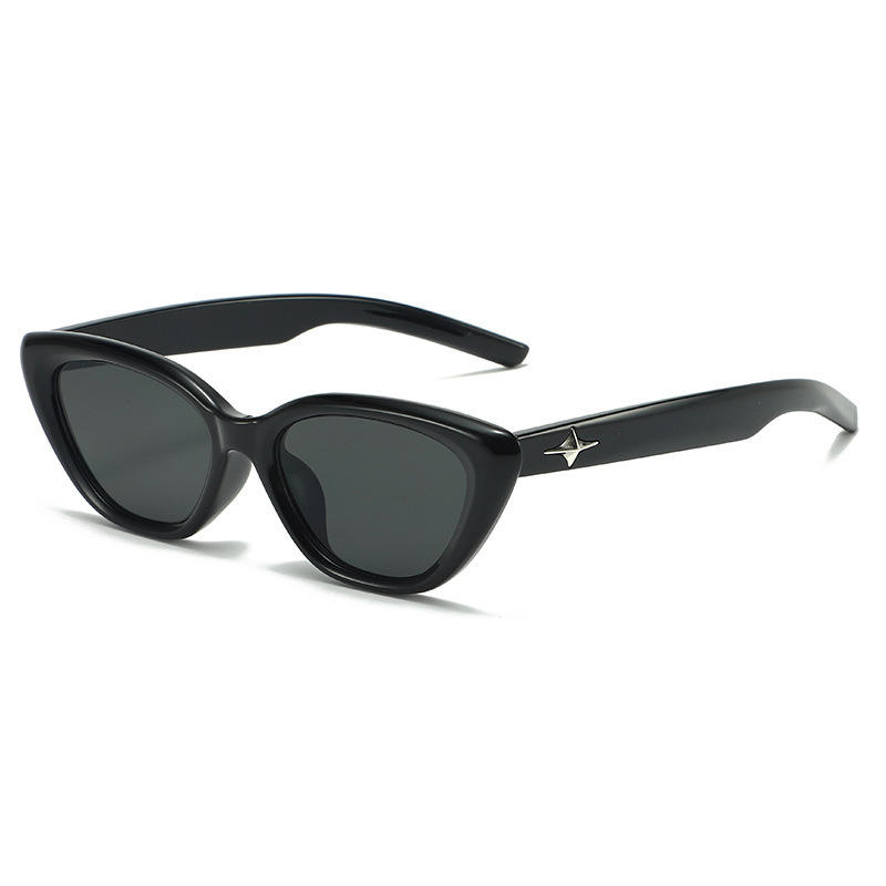 แว่นกันแดดทรงแคทอายสีดำสไตล์เรโทรสำหรับผู้หญิง UV400 กรอบพีซี รุ่นที่ 3 ดีไซน์รูปดาวหกแฉก แฟชั่นทันสมัย