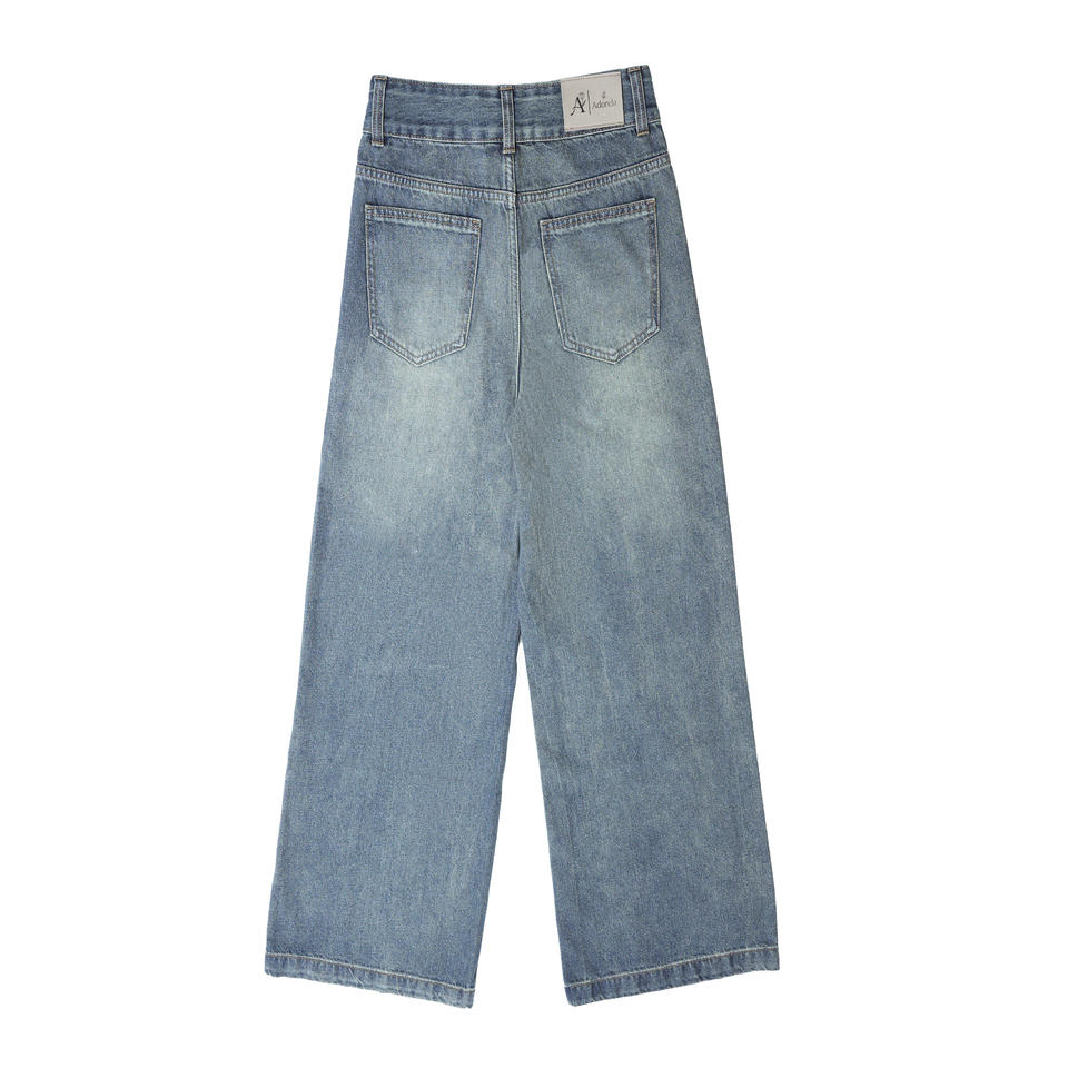 กางเกงยีนส์ขาตรงเอวสูงสีฟ้าย้อนยุคผ้าเดนิม8815-2ระบายอากาศได้ดีซักได้สวมใส่สบายอเนกประสงค์สวมใส่ทุกวัน