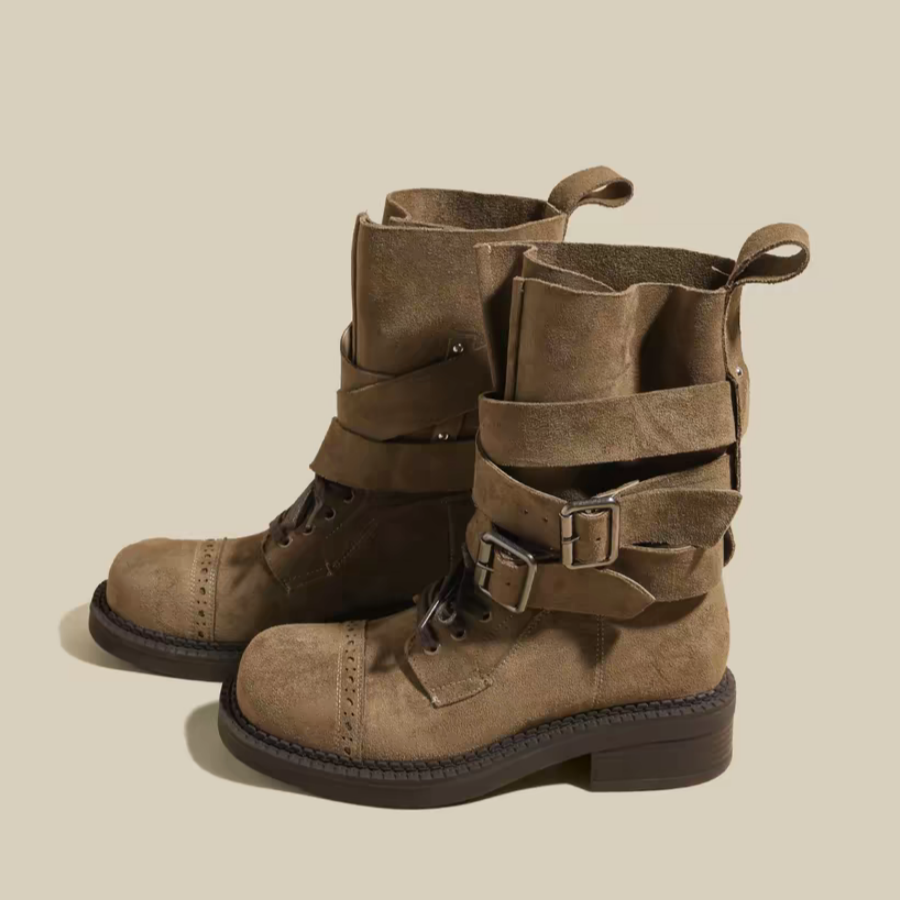 รองเท้าบูทหนังวัวดีไซน์เรโทรโบรก รองรับอุ้งเท้า โครงสร้างน้ำหนักเบา เพิ่มความสูง กันน้ำ กันลื่น สำหรับผู้หญิงใส่ในชีวิตประจำวัน