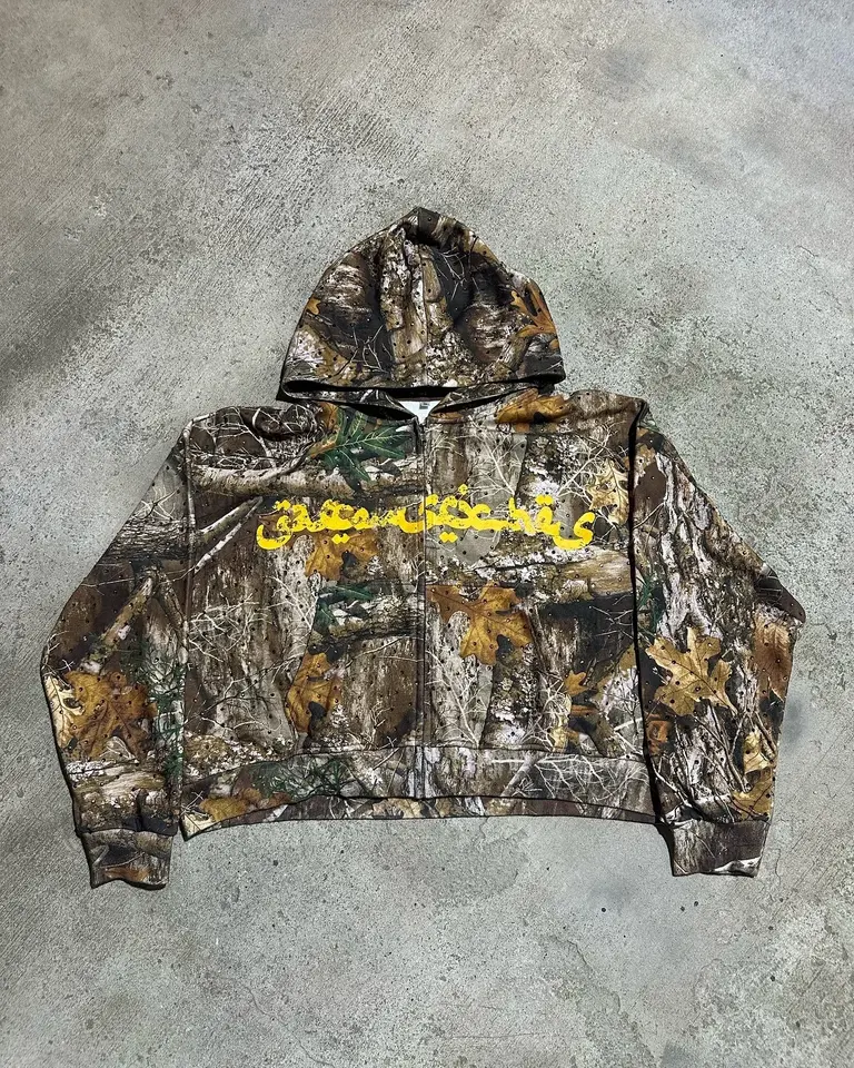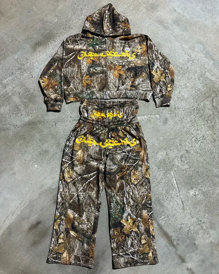 ชุดเสื้อกีฬาแขนยาวมีซิปลายพรางแบบย้อนยุคเซ็ตสองชิ้นเสื้อกีฬา Y2K ผู้ชายเสื้อสเวตเชิ้ตโอเวอร์ไซส์มีตัวอักษร