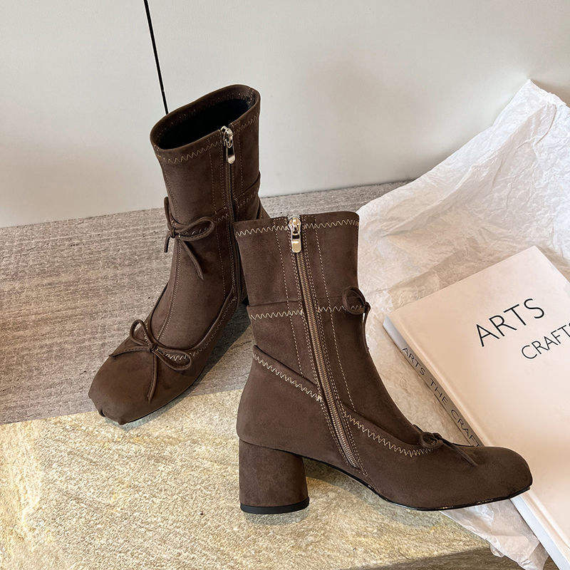 รองเท้าบูทผู้หญิงสไตล์เรโทรลำลองทันสมัย พร้อมหัวเข็มขัดแบบสบายๆ หัวกลม กันน้ำ พื้นเค้ก หนังแท้