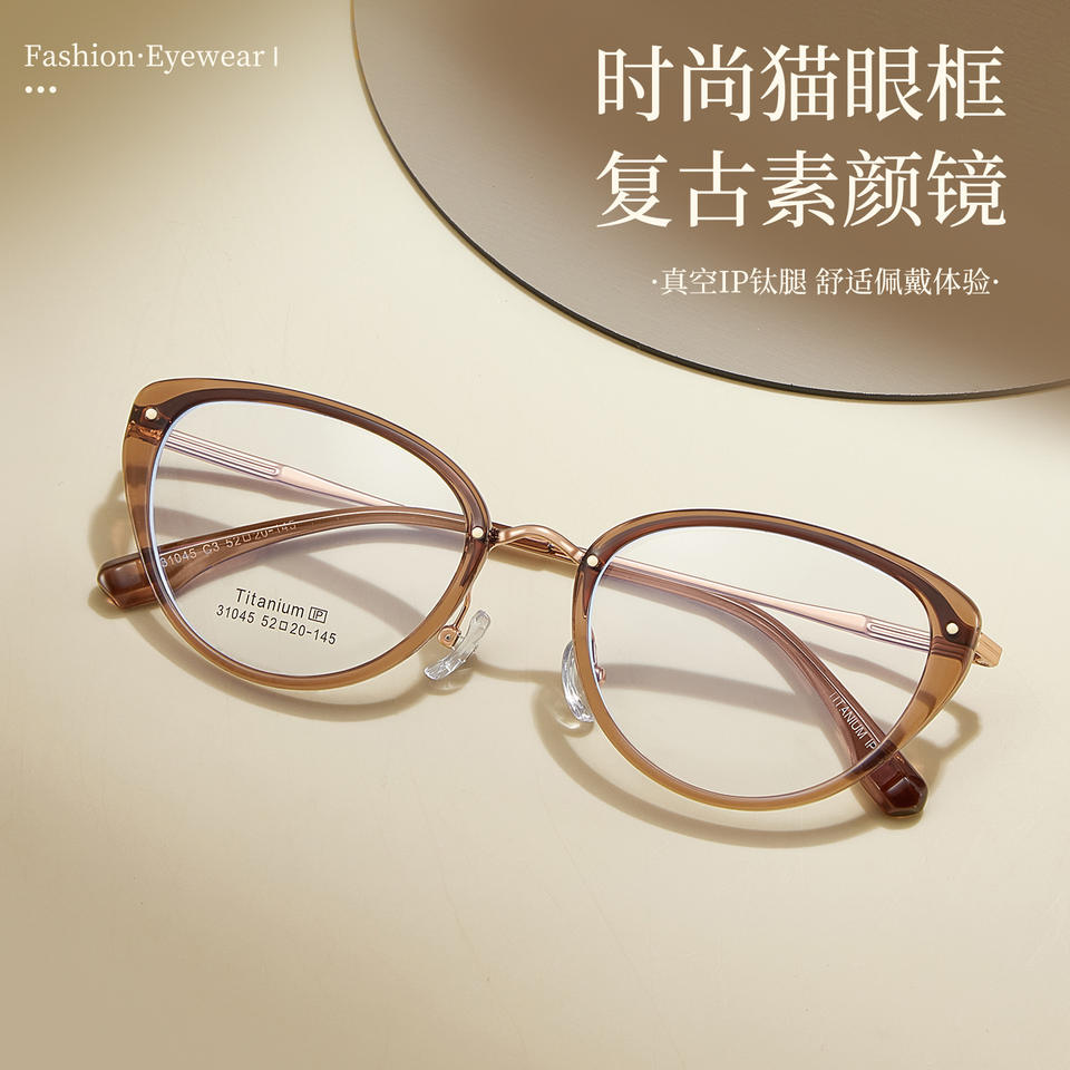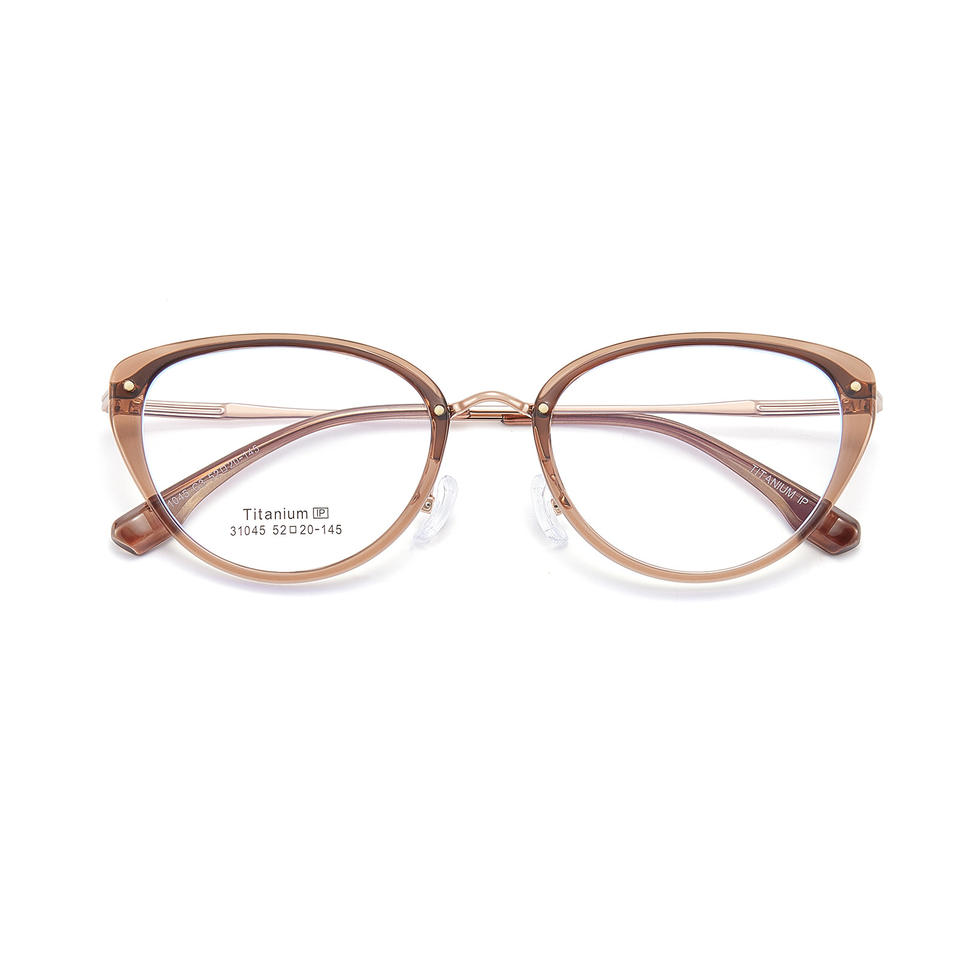 กรอบแว่นตาทรงแคทอายย้อนยุค ขาแว่นไทเทเนียม เลนส์เรซิ่นเต็มกรอบ ป้องกันรังสียูวี สำหรับทุกเพศ ผลิตที่ตานหยาง รุ่น 31045
