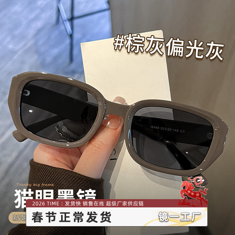 แว่นกันแดดทรงแคทอายสไตล์เรโทรสำหรับผู้หญิง กรอบสีเทา เลนส์ TAC ป้องกันรังสียูวี 400 แฟชั่นแว่นกันแดด ผลิตที่ตานหยาง