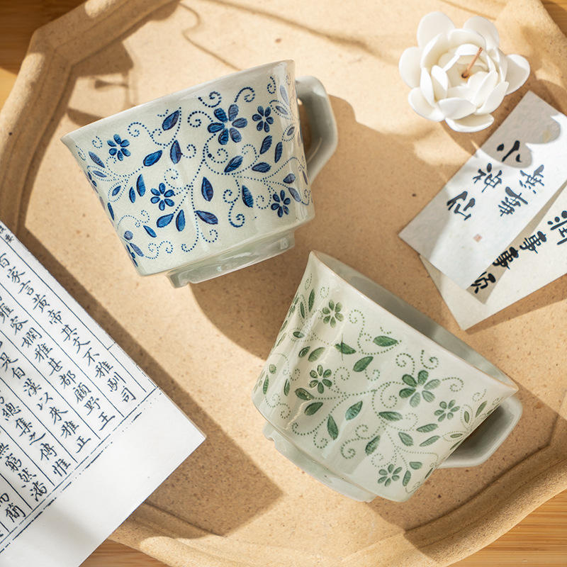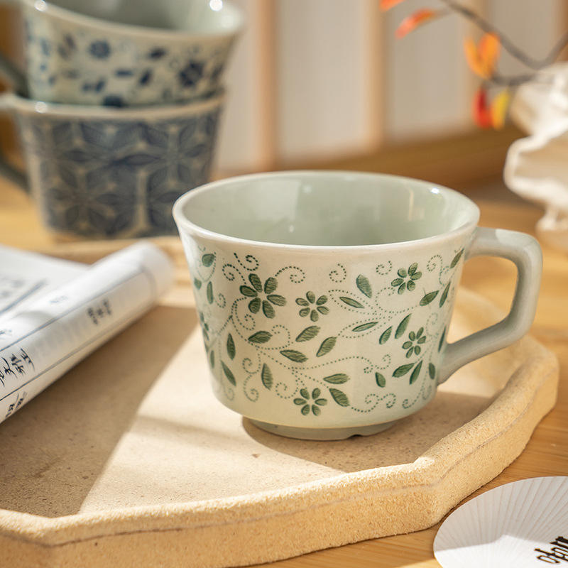 Retro Ceramic Coffee Mug With Floral Pattern Single Cup For Afternoon Tea And Breakfast Use