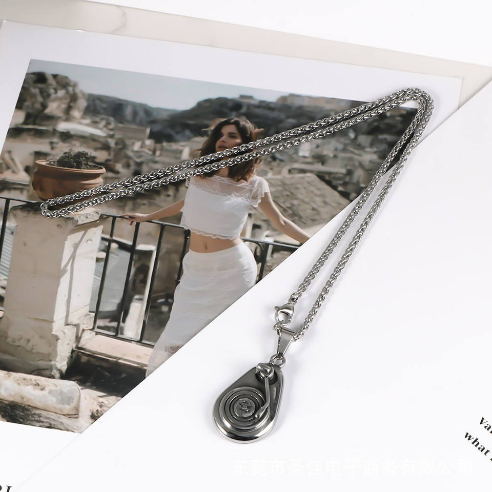 จี้ไทเทเนียมสไตล์จีนย้อนยุค ดีไซน์เครื่องเล่นแผ่นเสียงสุดเท่ สร้อยคอฮิปฮอปแนวร็อค เครื่องประดับผู้ชายสุดฮิต รุ่น SP1030