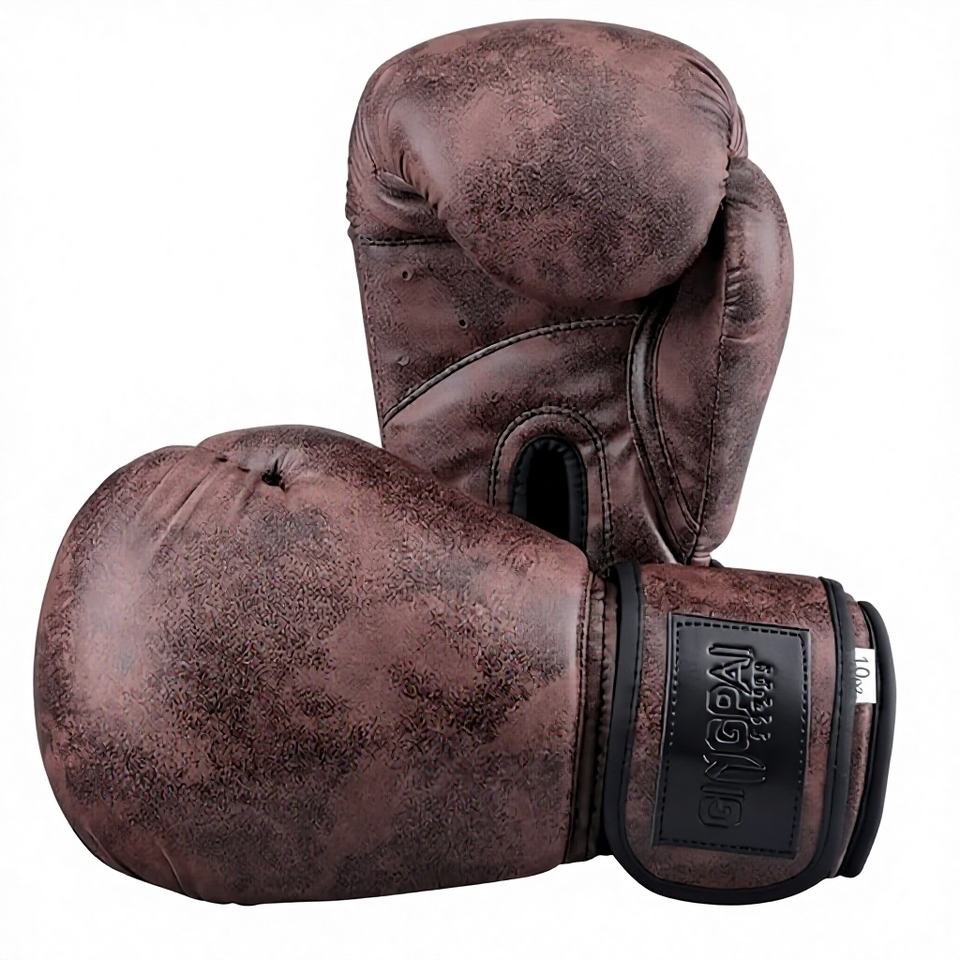 ถุงมือชกมวย MMA มวยไทย สีเรโทร สำหรับผู้ใหญ่ เด็ก ผู้หญิง/ผู้ชาย แบบผูกเชือก หนัง PU อุปกรณ์ออกกำลังกาย