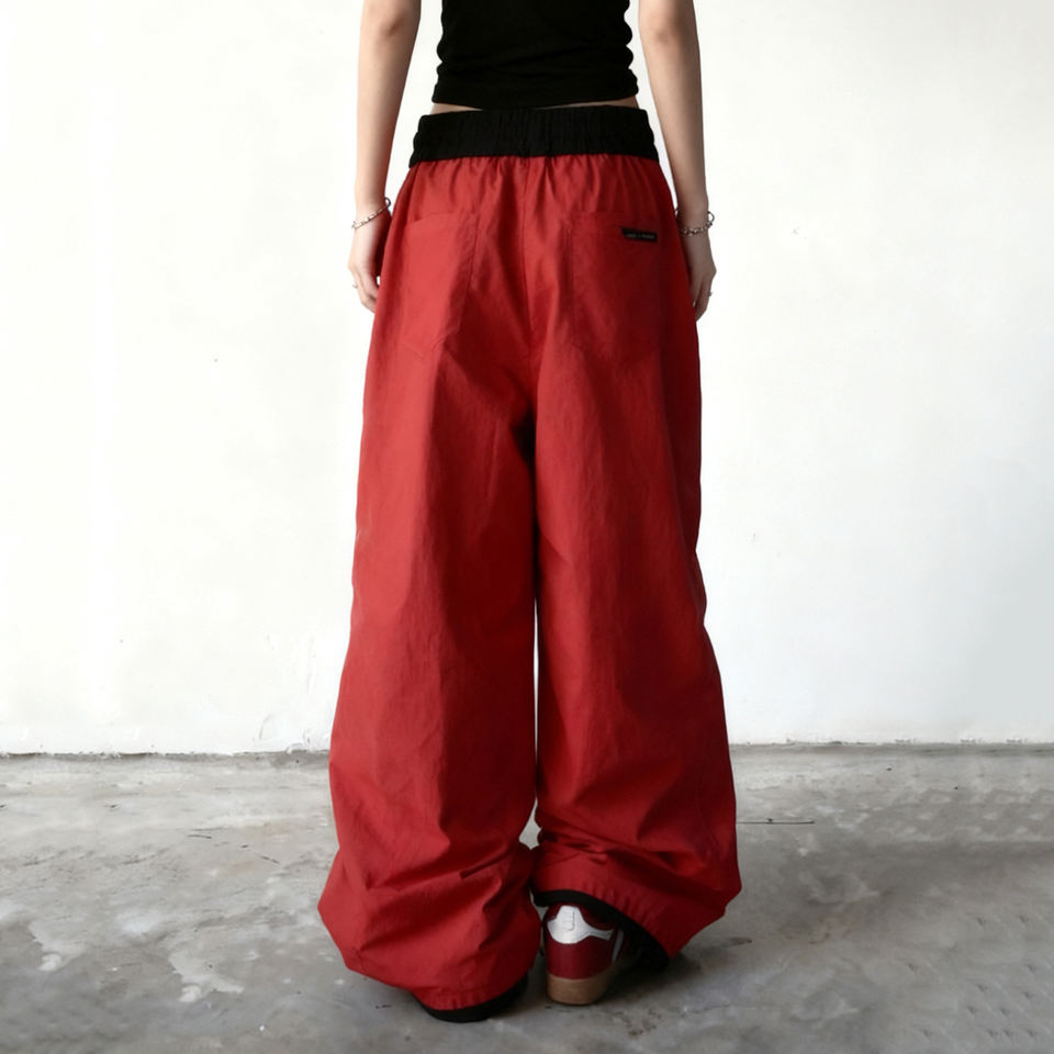 กางเกงสตรีทแวร์สไตล์เรโทร - กางเกงขายาวทรงหลวมถักนิตติ้ง ดีไซน์เรียบง่าย เป็นมิตรต่อสิ่งแวดล้อมและระบายอากาศได้ดี