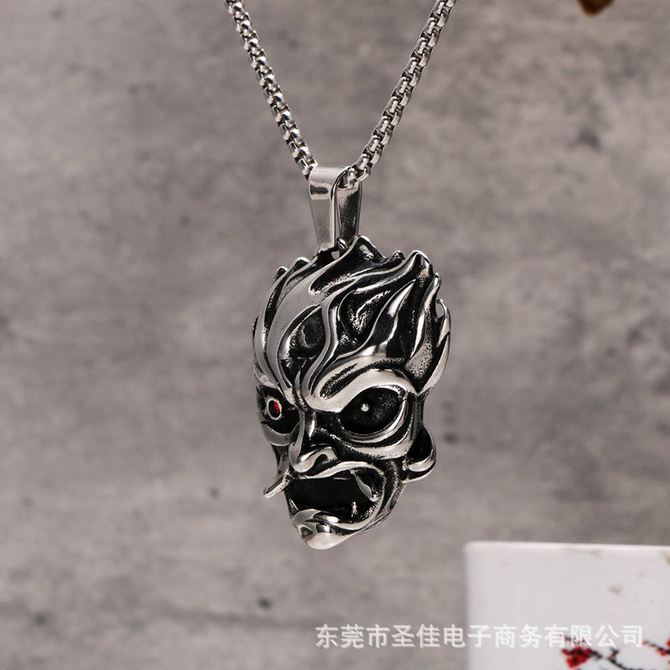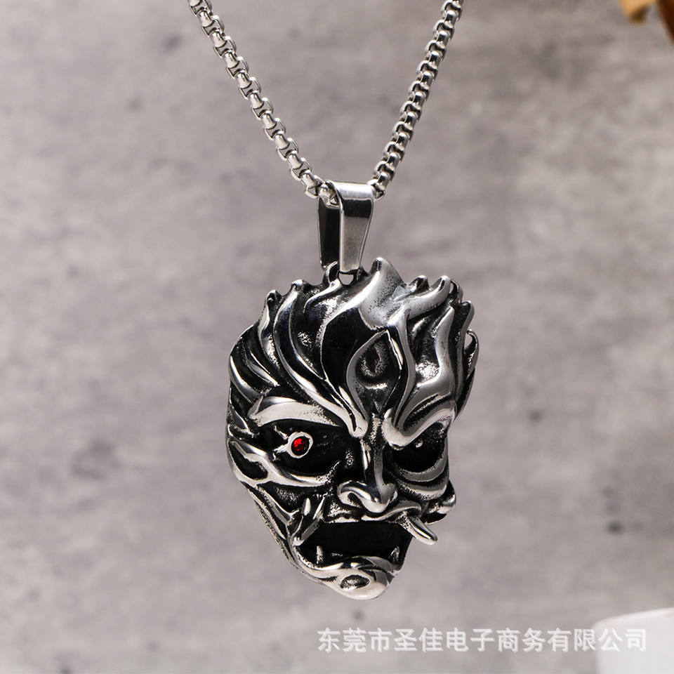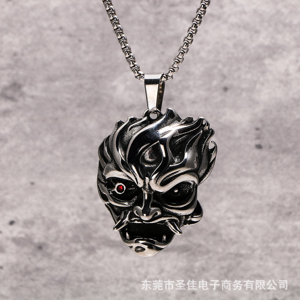 จี้สร้อยคอรูปหน้ากากเดวิลฟางสแตนเลสสตีลสไตล์เรโทร SP1076 เครื่องประดับแฟชั่นลายการ์ตูน
