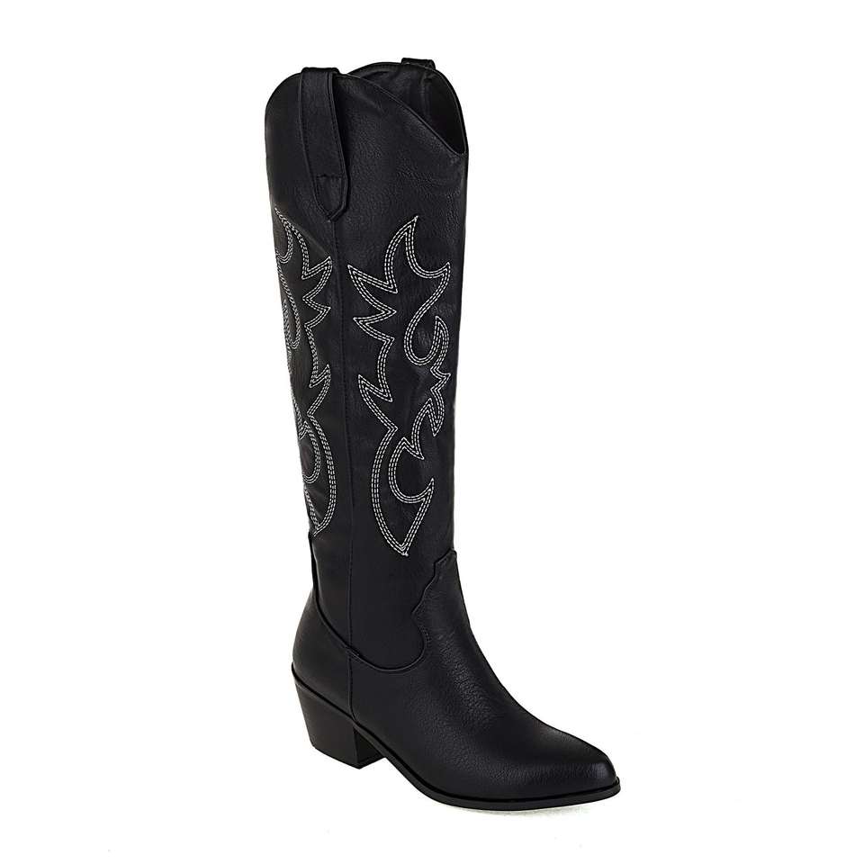 รองเท้าบูทคาวบอยสไตล์ตะวันตกปักลายย้อนยุคแบบมีซิป ส้นหนา ปลายแหลม พื้นยางสูง เหมาะสำหรับฤดูใบไม้ร่วง