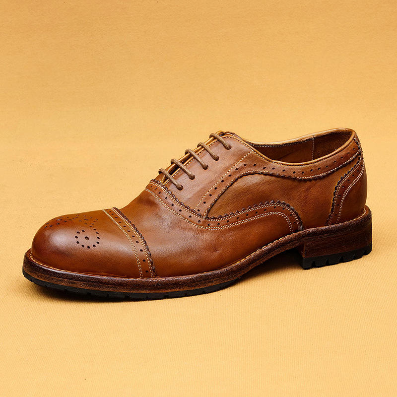รองเท้าหนังแท้แบบทางการของผู้ชายปักลายย้อนยุคดีไซน์หรูเหมาะสำหรับนักธุรกิจสวมใส่สบายนุ่มลื่น