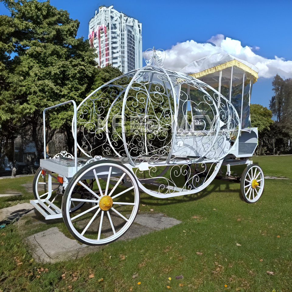 รถม้าศพสไตล์ยุโรปย้อนยุค โครงสร้างเหล็ก ยางตัน ล้อ 4 ล้อ หรูหรา รูปทรงฟักทอง