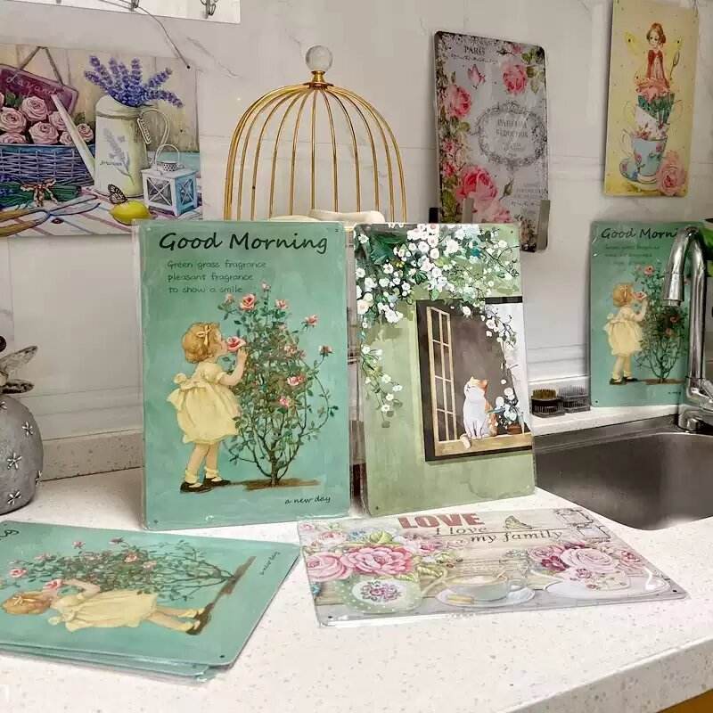 ป้ายเหล็กตกแต่งผนังลายสัตว์เลี้ยงในฟาร์มสไตล์เรโทร ไก่ วัว ทนทาน รูปทรงสี่เหลี่ยมผืนผ้า พร้อมลายพิมพ์ UV