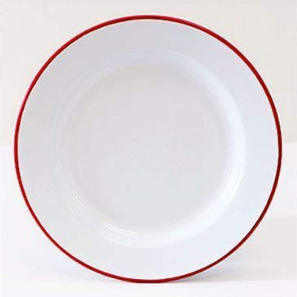 จานรองแบบเรโทรฟาร์มเฮาส์ ขอบสีดำ ทนทานต่อการแตกหัก สไตล์เคลือบอีนาเมล จานตกแต่งสำหรับงานจัดเลี้ยงกลางแจ้งและงานปาร์ตี้