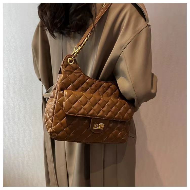 Retro Fashion Ladies Diamond Lattice Quality Handbags PU Leather Texture Chain Shoulder Bags for Women