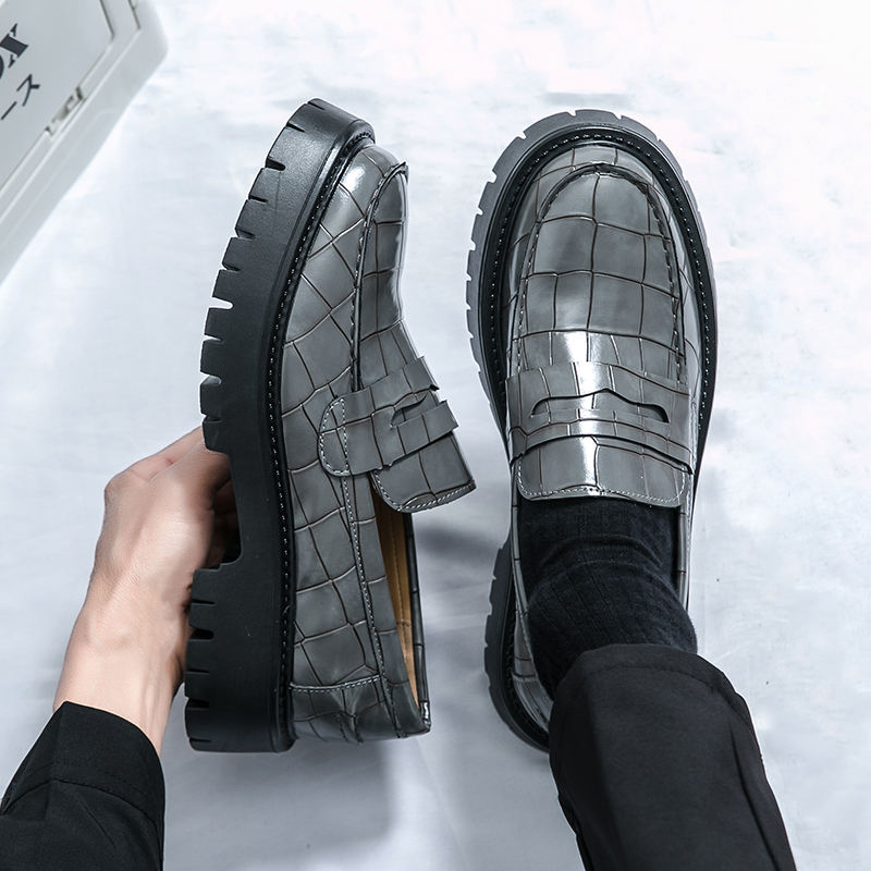 เทรนด์แฟชั่นย้อนยุค รองเท้าแบบสวม พื้นผิวหนัง รองเท้าพื้นหนาเพิ่มความสูง รองเท้าลำลองหนังสำหรับกิจกรรมกลางแจ้ง