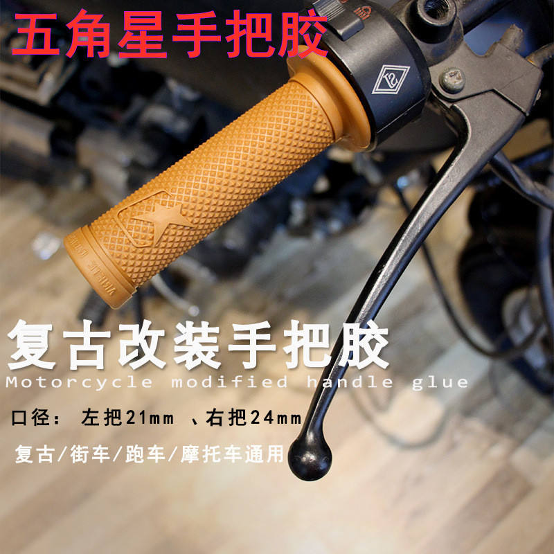 ปลอกแฮนด์รูปดาวห้าแฉกแบบย้อนยุคยางกันลื่นสำหรับรถมอเตอร์ไซค์ครุยเซอร์สีน้ำตาลอ่อน
