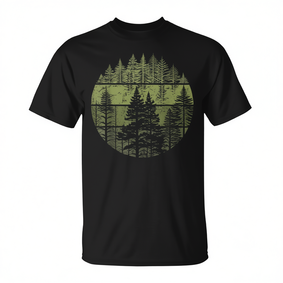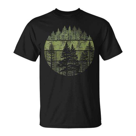 เสื้อยืดคอกลมแขนสั้นพิมพ์ลายกราฟิกวินเทจแนวธรรมชาติป่าไม้ย้อนยุคสำหรับทุกเพศ
