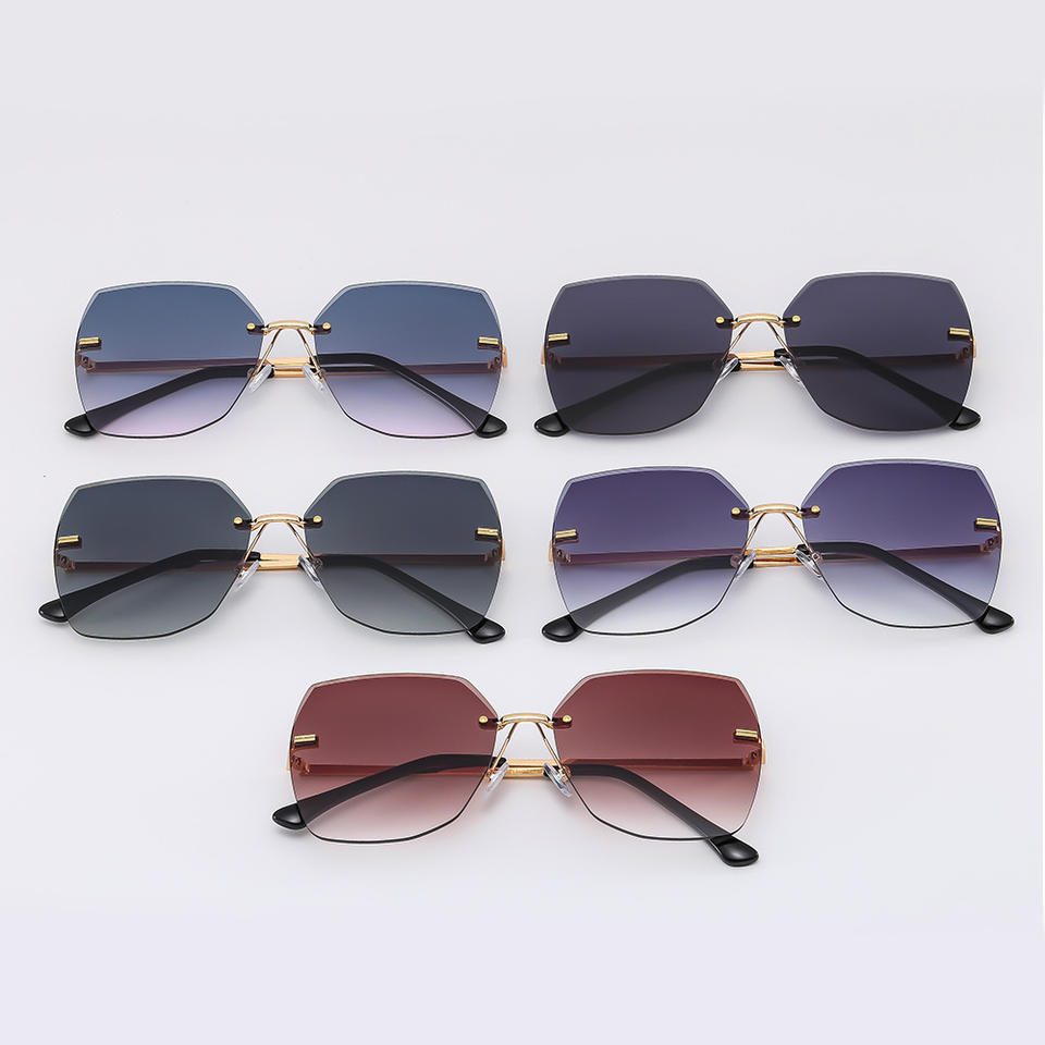 แว่นกันแดดทรงเรโทรไร้กรอบ ขอบมน สำหรับผู้หญิง กรอบโลหะ ป้องกันรังสียูวี 400 รุ่นที่ 3 เลนส์ PC กรอบสีดำ