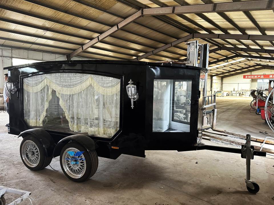 รถม้าสีดำแบบย้อนยุครถยกหัวใจรถจักรยานยนต์สำหรับงานศพและพิธีการการขนส่งพิเศษ