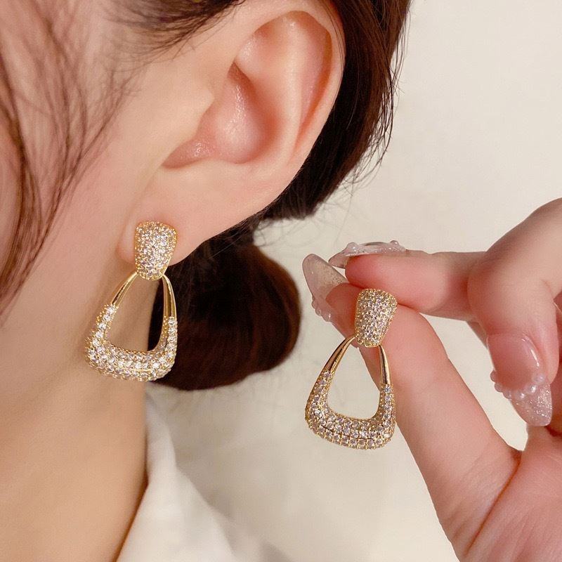 ต่างหูทรงเรขาคณิตสไตล์โบฮีเมียนแบบเรโทร ประดับเพชร สำหรับผู้หญิง สไตล์เกาหลี เรียบง่าย มีเอกลักษณ์