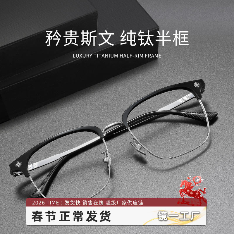 กรอบแว่นตาแบบครึ่งขอบสไตล์เรโทร 5531 ทรงสี่เหลี่ยม ไทเทเนียมแท้ น้ำหนักเบา แว่นสายตาผู้ชาย ดีไซน์คลาสสิก