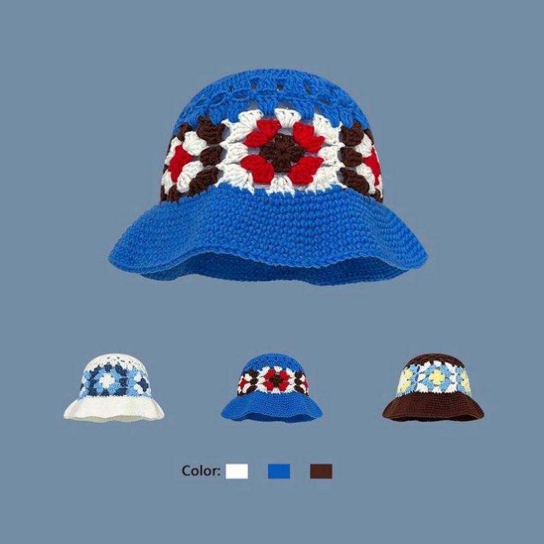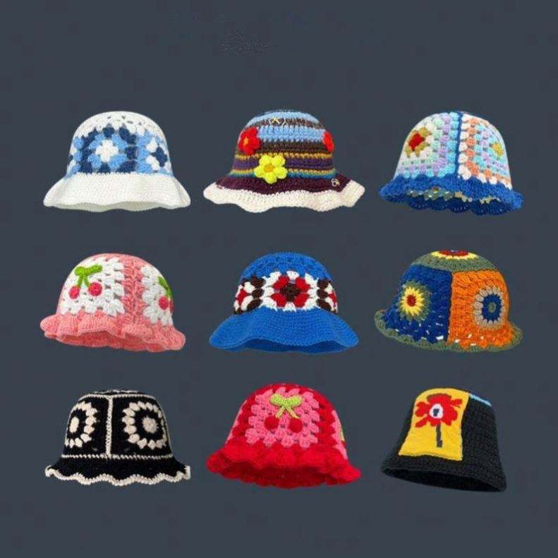 หมวกไหมพรมถักมือลายดอกไม้สไตล์เรโทร สำหรับผู้หญิง ฤดูใบไม้ร่วงและฤดูหนาว ดีไซน์หวานน่ารัก ช่วยให้ใบหน้าดูเล็ก ทันสมัย