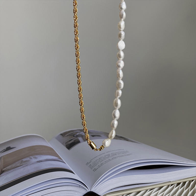 สร้อยคอไข่มุกสไตล์มินิมอลแบบเรโทร ดีไซน์เกาหลี ตะวันออก ตกแต่งด้วยไข่มุก ดีไซน์เฉพาะตัว ทันสมัย