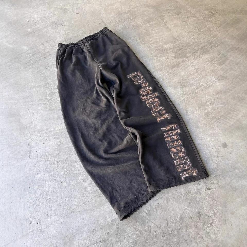 กางเกงขายาวพิมพ์ลายเสือดาวย้อนยุคกางเกงขายาวลำลองไฮสตรีทชุดกีฬากลางแจ้งฟิตเนส