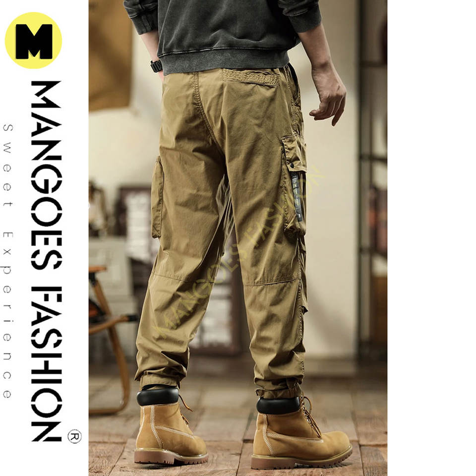 กางเกงคาร์โก้สไตล์เรโทรสำหรับฤดูใบไม้ร่วง-ฤดูหนาว ทรงปกติ ใส่ได้ทั้งชายและหญิง ผ้าลูกฟูก ระบายอากาศได้ดี น้ำหนักปานกลาง มีเชือกผูก