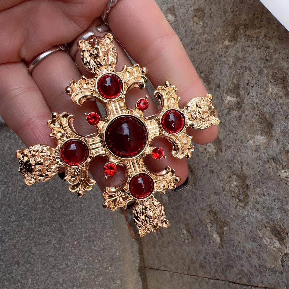 เข็มกลัดงานแต่งงานสไตล์เรโทรสุดหรู ชุบทอง ประดับมุก รูปทรงเรขาคณิต ไม้กางเขน ดอกไม้ สำหรับผู้หญิง