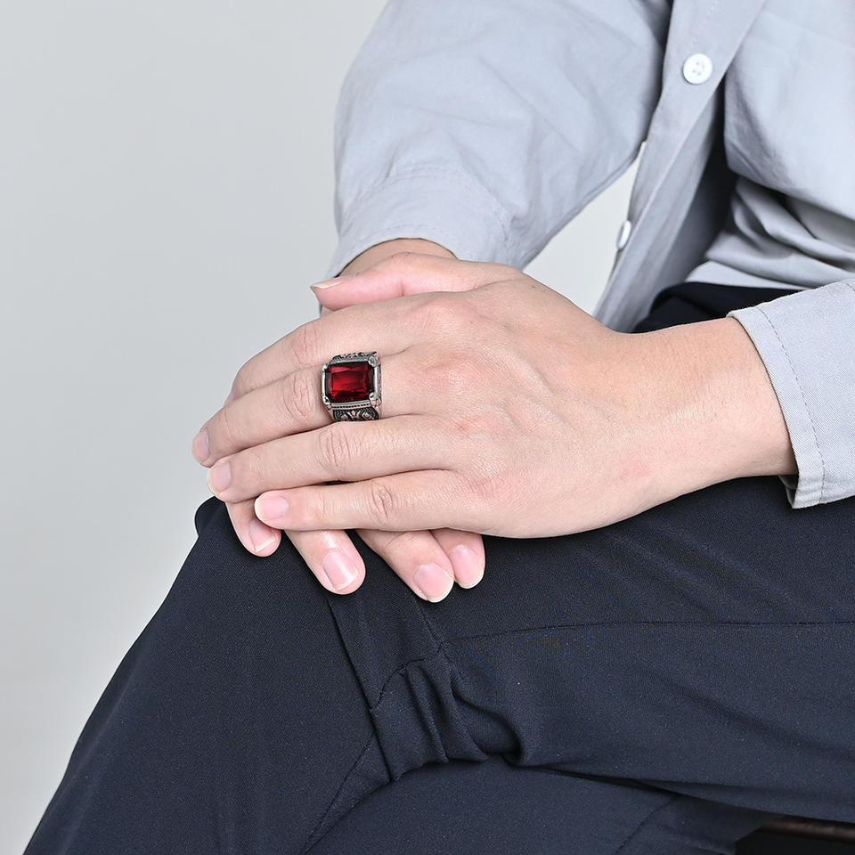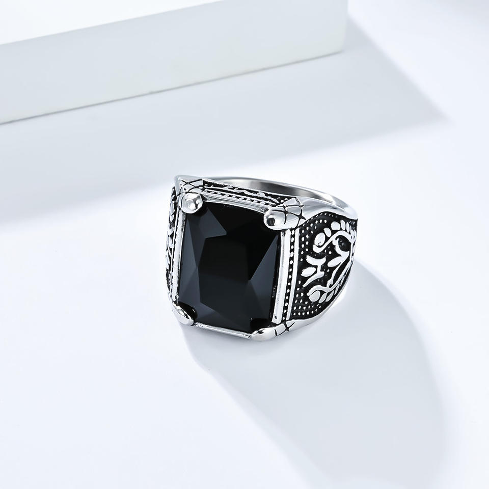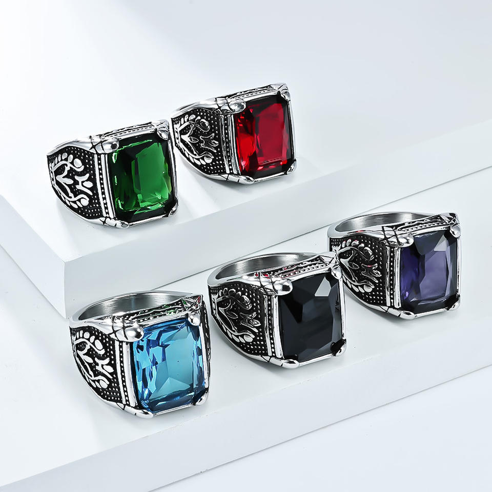 แหวนผู้ชายสไตล์เรโทรประดับพลอยทรงเหลี่ยม กรอบสแตนเลส ดีไซน์ทันสมัย ของขวัญเครื่องประดับแฟชั่น สีดำ แดง เขียว ม่วง ฟ้าอ่อน