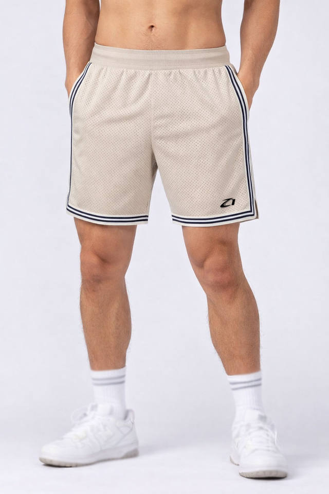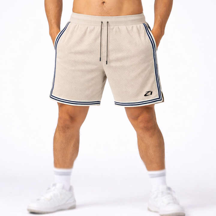 กางเกงบาสเก็ตบอลตาข่ายสไตล์เรโทรสำหรับผู้ชาย ระบายอากาศได้ดี น้ำหนักเบา กางเกงออกกำลังกาย เอวผูกเชือก แถบสีตัดกัน แบบ OEM