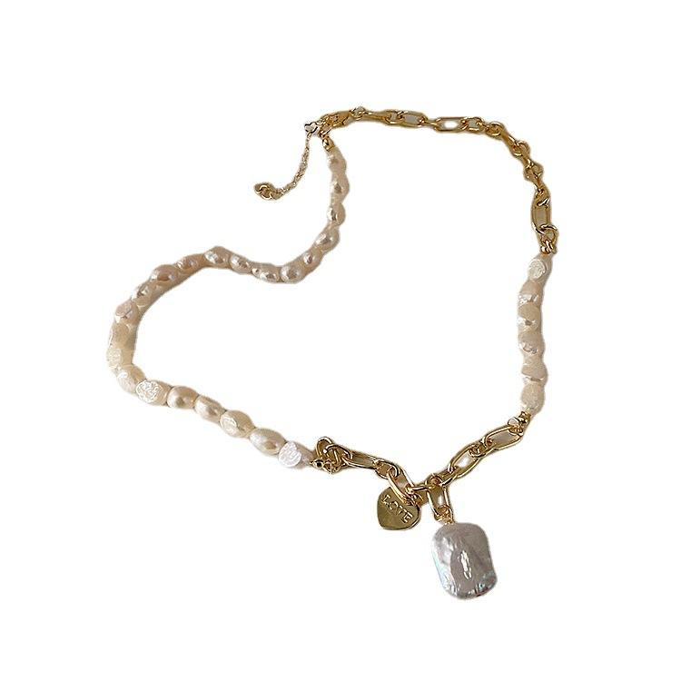 สร้อยคอมุกน้ำจืดธรรมชาติสไตล์เรโทร พร้อมจี้โลหะรูปหัวใจเรียบง่ายทันสมัย สไตล์ยุโรป