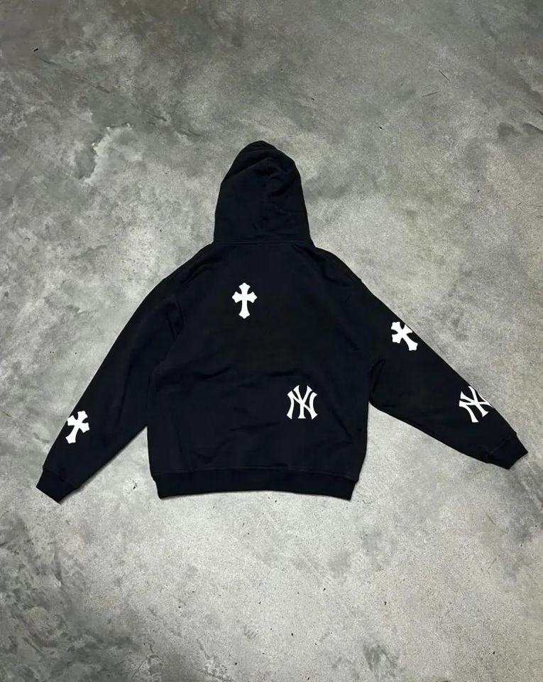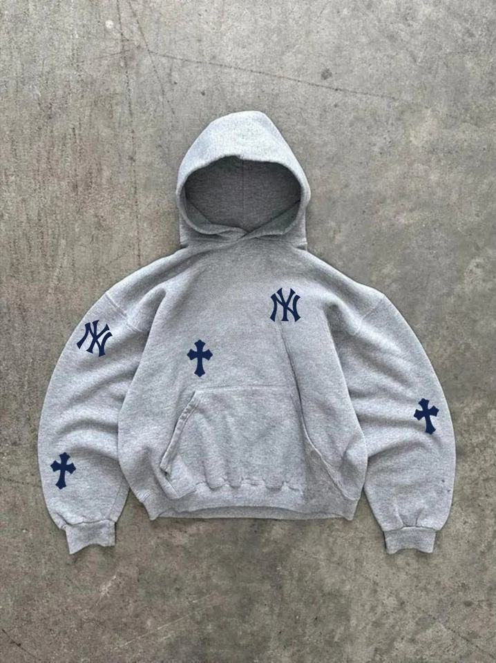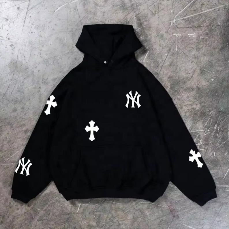 เสื้อฮู้ดสไตล์เรโทรนิวยอร์ก ผ้าฝ้ายถักนุ่มแบบโอเวอร์ไซส์ พร้อมลายพิมพ์ดิจิทัล ดีไซน์เรียบง่าย รับผลิตแบบ OEM