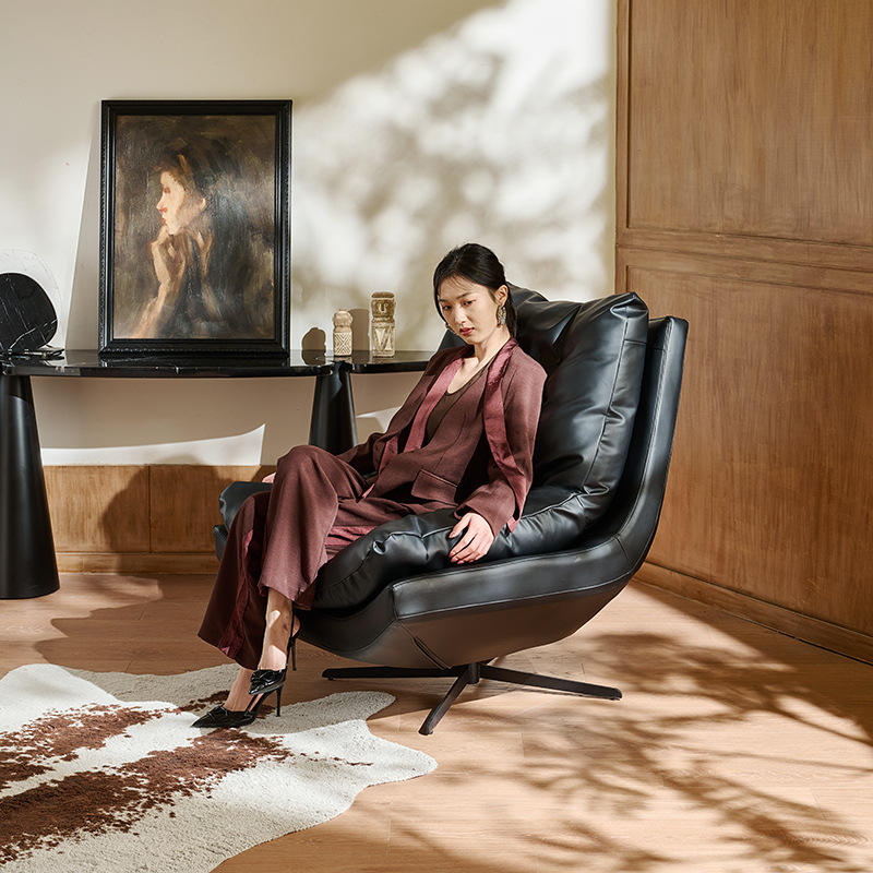เก้าอี้พักผ่อนสไตล์เรโทร โอห์ม ดีไซน์สแกนดิเนเวียนสมัยใหม่ พนักพิงสูง ปรับเอนได้ หมุนได้ เหมาะสำหรับใช้ในบ้าน