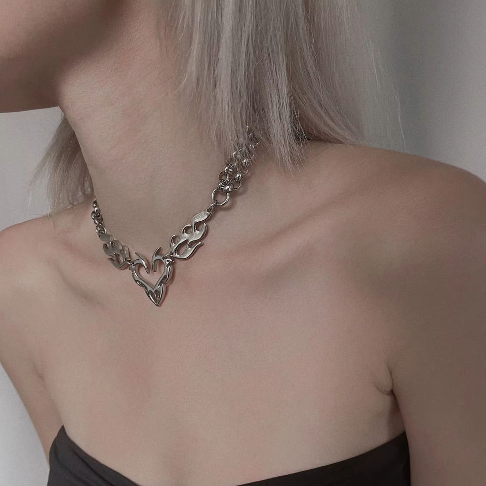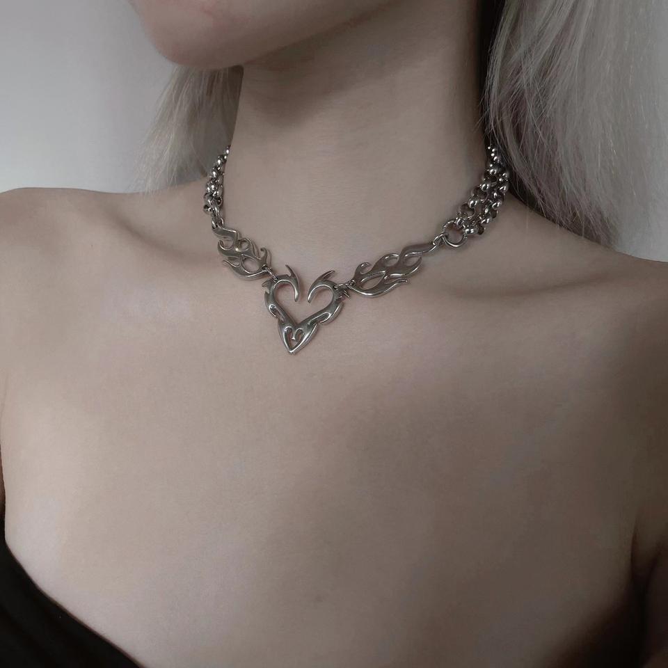 สร้อยคอรูปหัวใจแบบย้อนยุคแนวพังก์แบบกลวงพร้อมจี้สร้อยคอแห่งความรักเครื่องประดับแบบกระดูกไหปลาร้าบุคลิกภาพสไตล์ฮิปฮอป