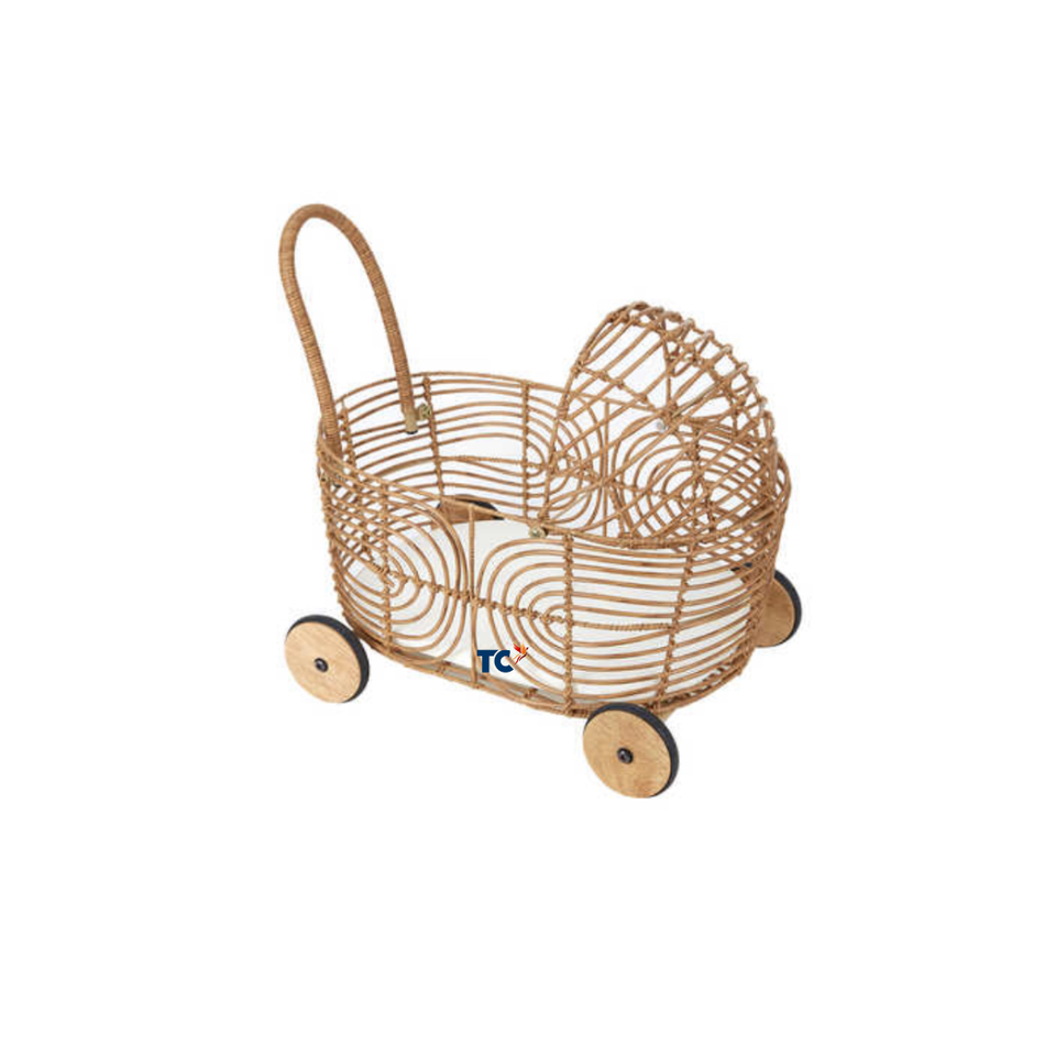 รถเข็นเด็กหวายย้อนยุค อุปกรณ์ถ่ายภาพ และรถเข็นตุ๊กตาเด็กที่ผลิตในเวียดนาม